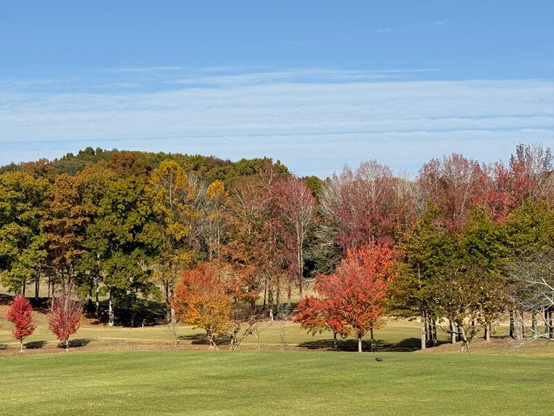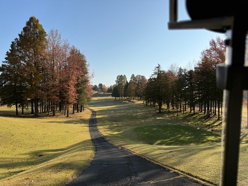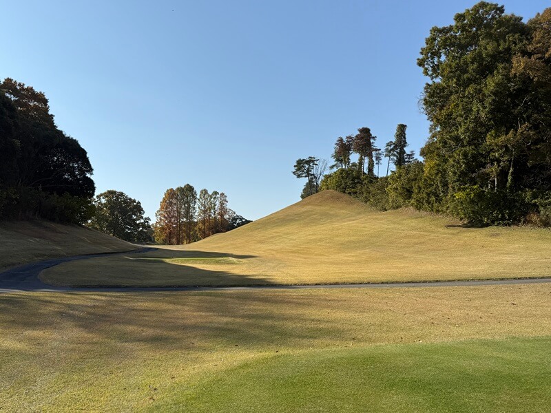 広さ | 普通 | ・ フェアウェイは普通 ・ 総距離はやや長く、ロング(500yd超3)、ミドル(400yd超2)ともに長い ・ 特設ティーが多く、進行重視 ・ ややドッグレッグホールが多い ・ 池やバンカーなどで視覚的に狭められているが、狭くはない |